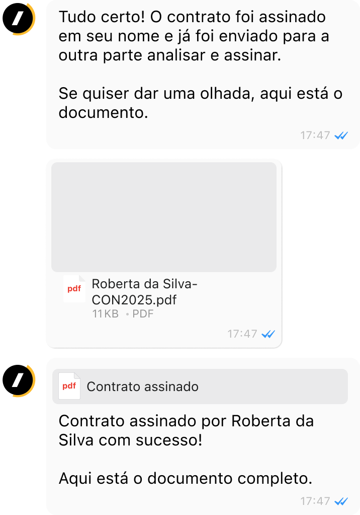 1. Diga (em texto ou voz) que deseja enviar um contrato.