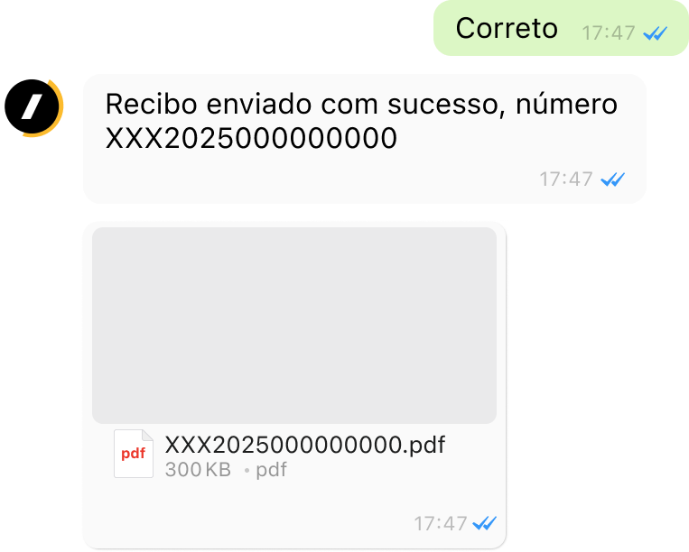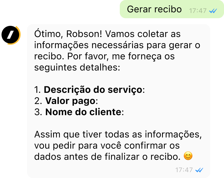 - Diga (em texto ou voz) que deseja gerar um recibo.
